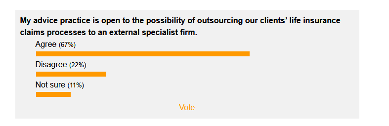 The latest poll found that two in three advisers/colleagues (67%) agree they’re open to outsourcing their clients’ life insurance claims. Only one in five (22%) disagree, with the rest unsure.