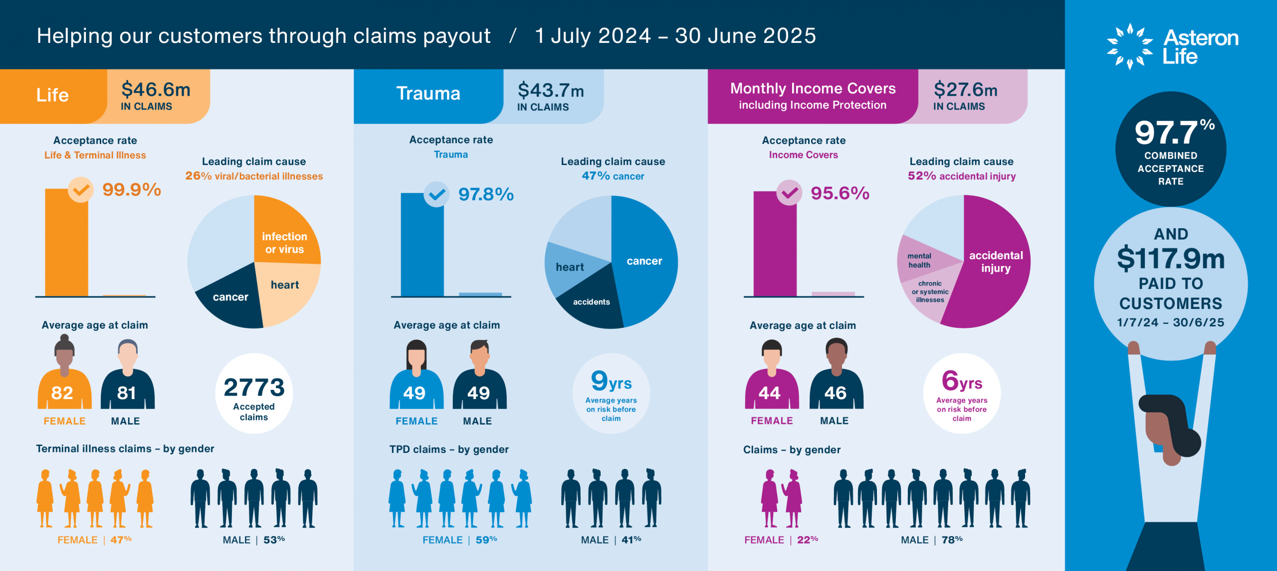 Asteron Life paid a total of $117.9 million in claims to its life, trauma and income protection customers in the year ending June 2025.